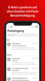 Lese und bearbeite Deine E-Mails in der Vodafone E-Mail & Cloud-App. Eine neue E-Mail kannst Du einfach mit einem Klick erstellen.